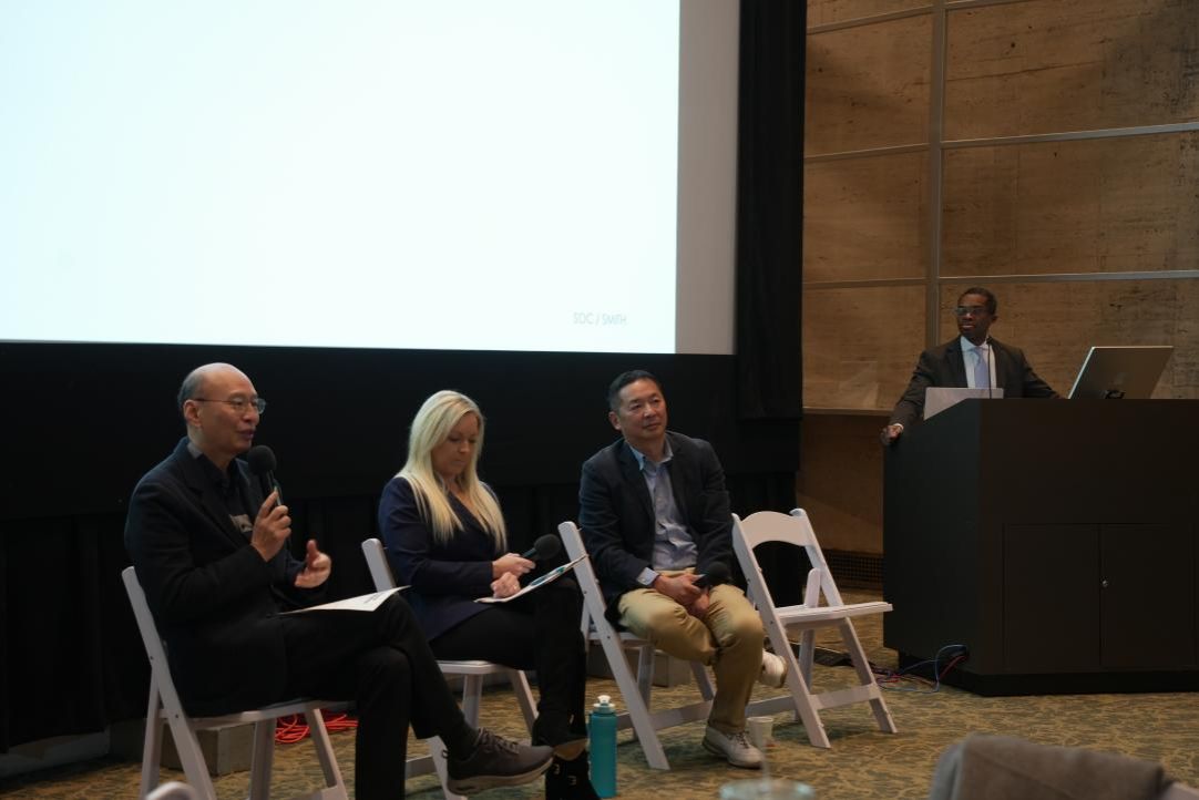 在“学者对话:人工智能与体育传播的未来”环节,由Brent Smith博士主持,黄煜教授、石磊教授以及爱默生学院传播学助理教授Lauren Anderson博士共同参与对话讨论,围绕人工智能技术在运动、健康及跨文化传播中的应用展开了深入探讨,并强调了人工智能在推动全球健康管理中的潜力与挑战。