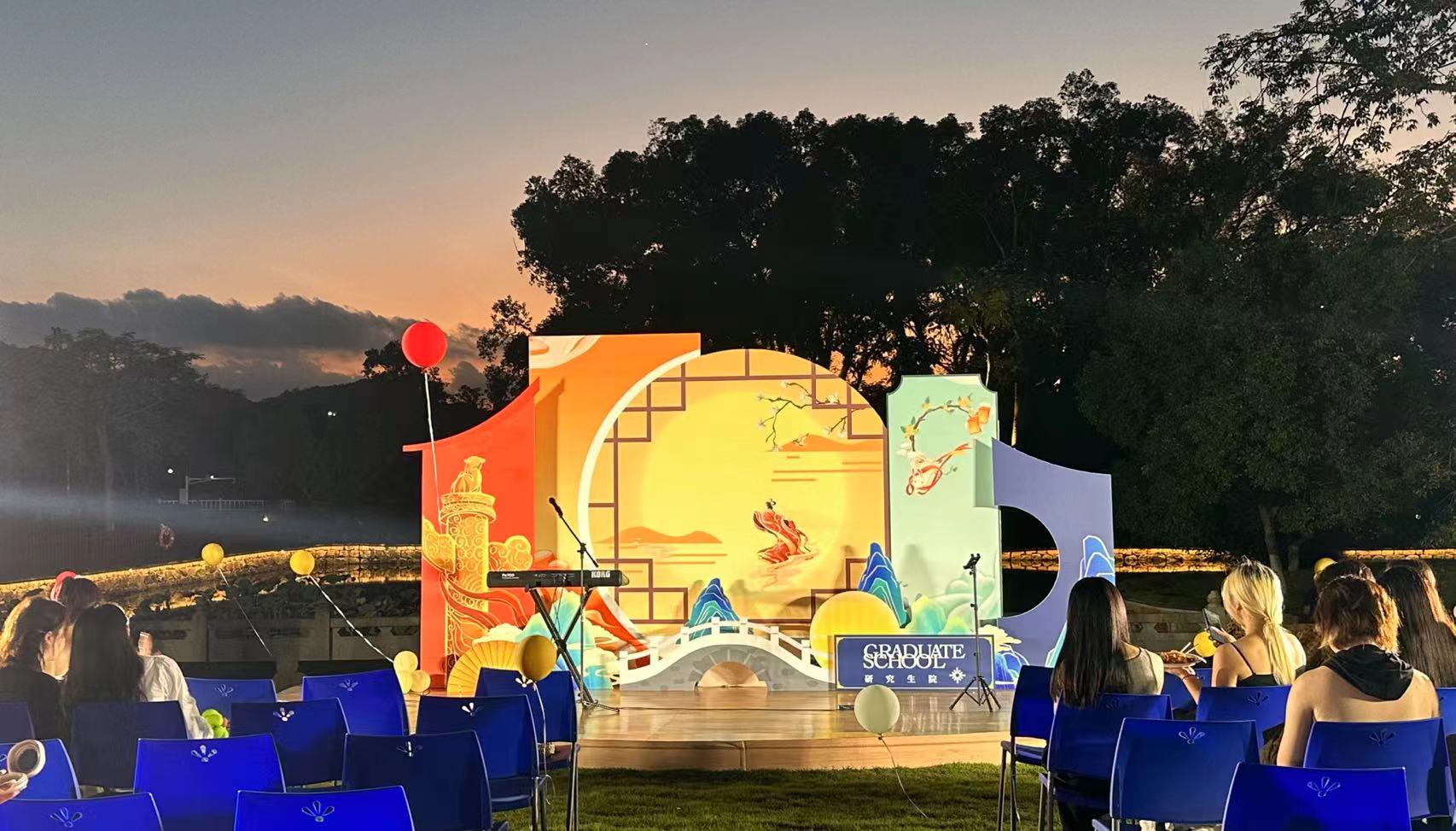 恰逢双节之际,北师港浸大(UIC)研究生院中秋国庆特别活动于本月25日在会同村顺利举行。此次庆祝活动不仅是一次文化的盛宴,更是一次心灵的交流,希望让身处异乡的师生们感受到了浓厚的节日氛围和家的温暖。近千名研究生院师生参与到活动当中,共同度过了一个充满诗意与温情的夜晚。